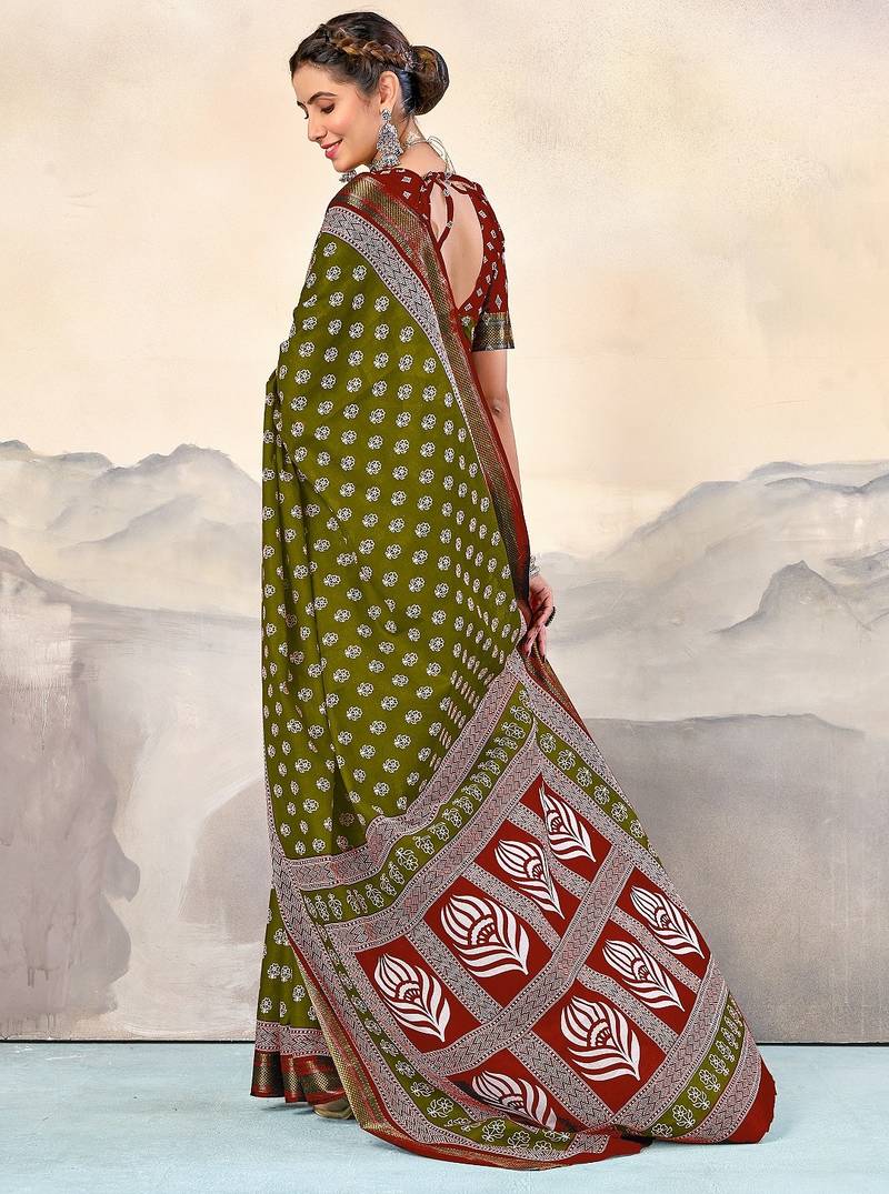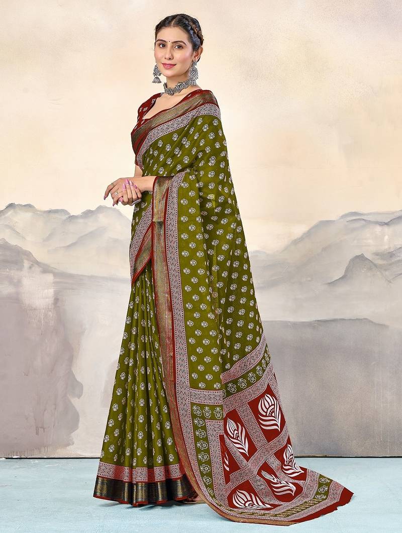 | Product Name | Green, Red Floral Print Mulmul Cotton Saree With Blouse. | |