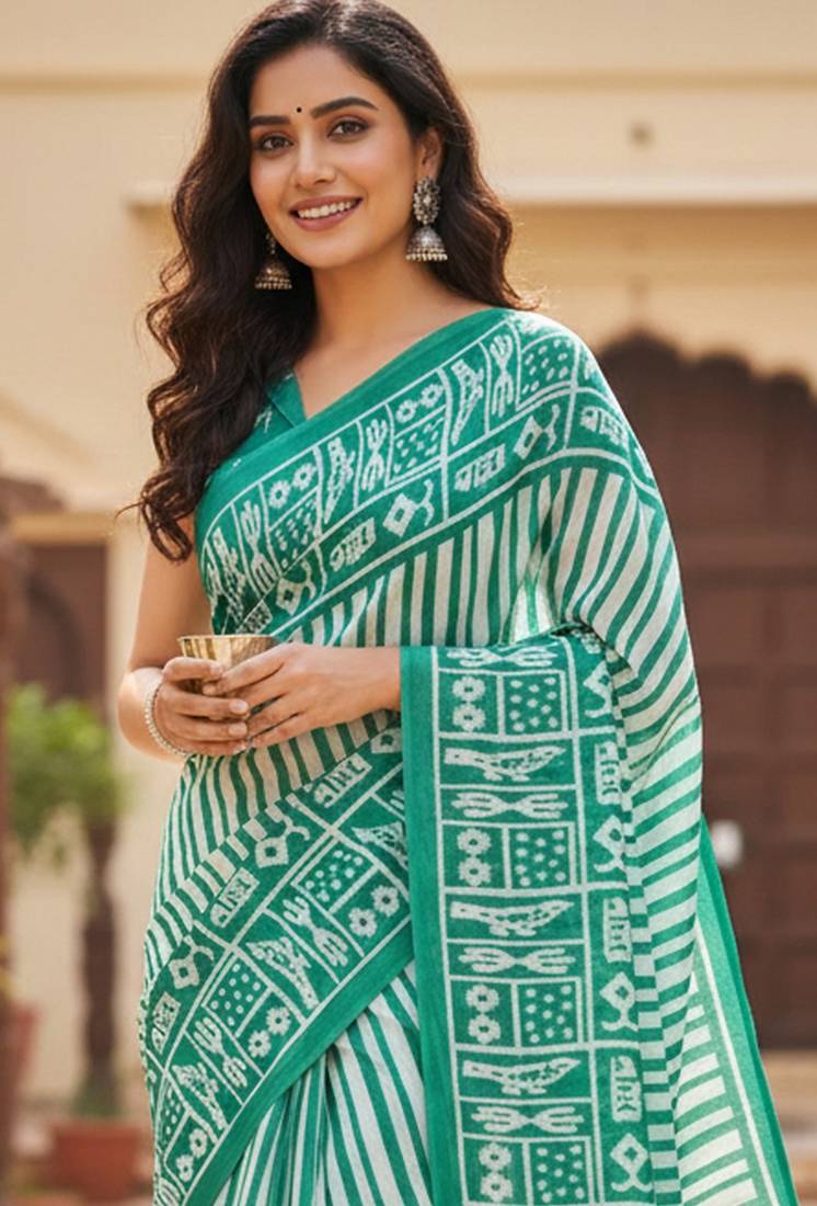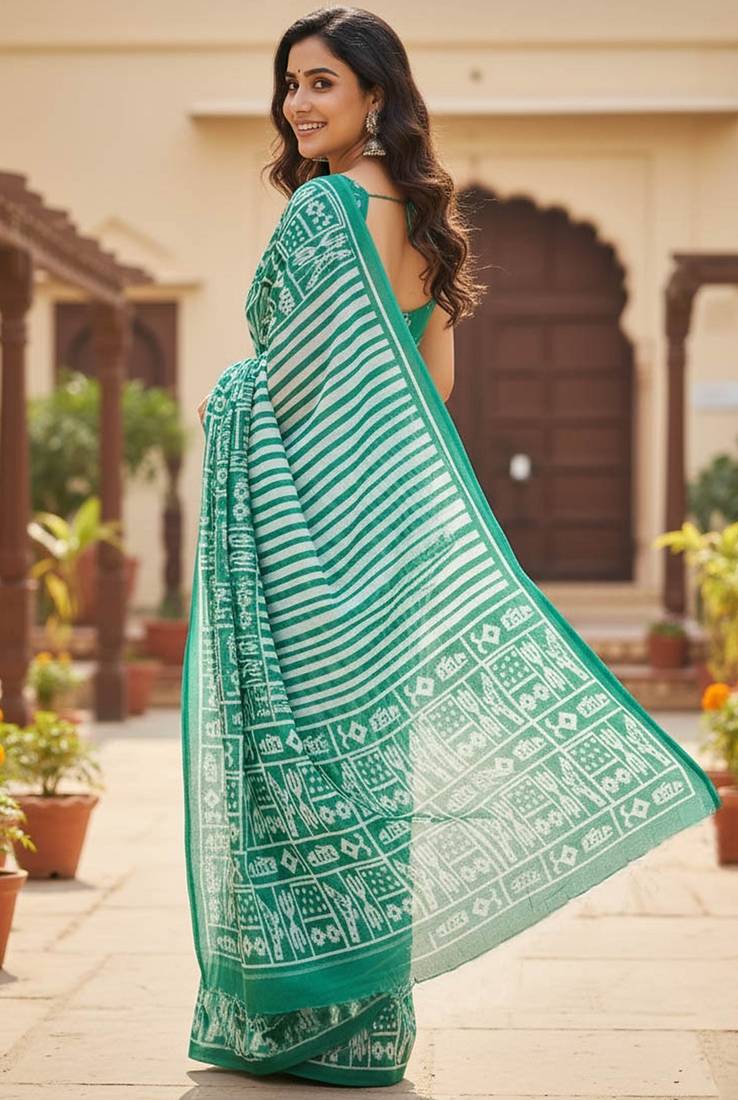 | Product Name | Green Striped Print Soft Pure Cotton Saree With Blouse. | |
