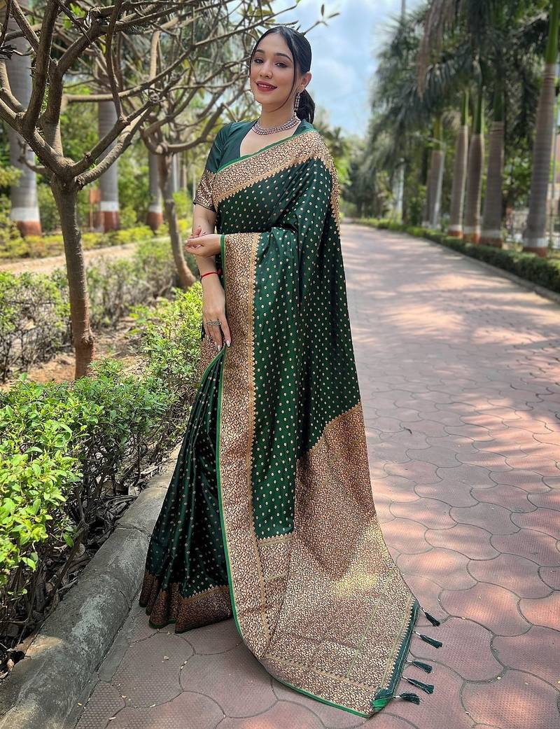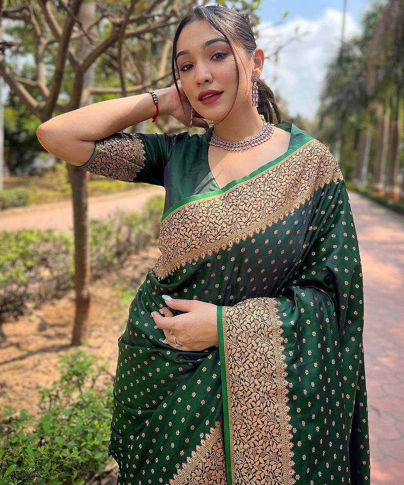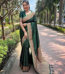 Green woven self design banarasi katan silk banarasi saree with blouse