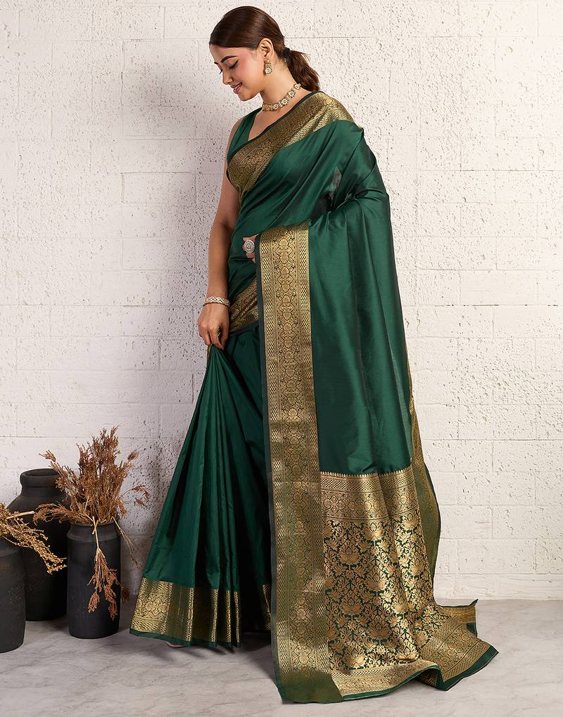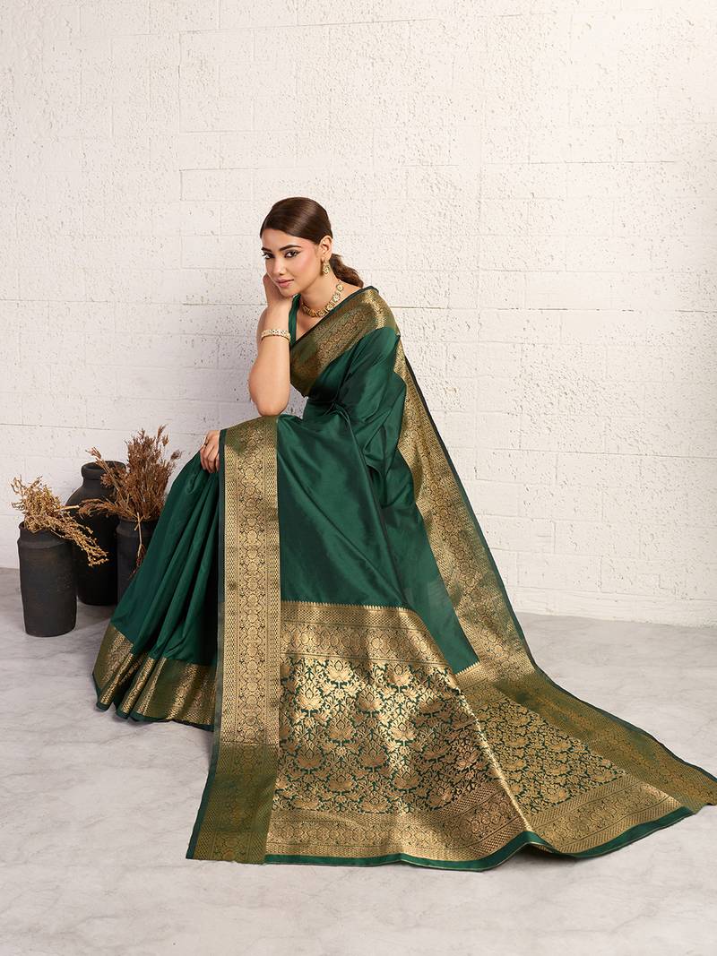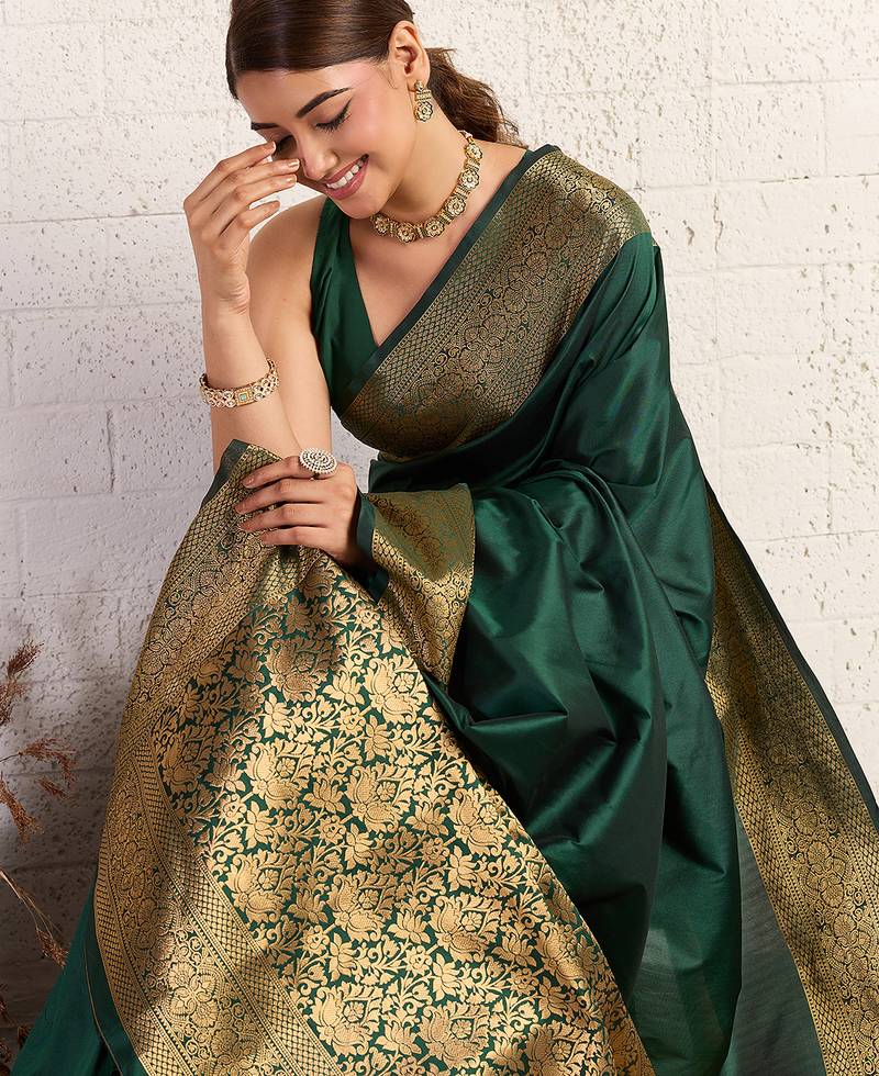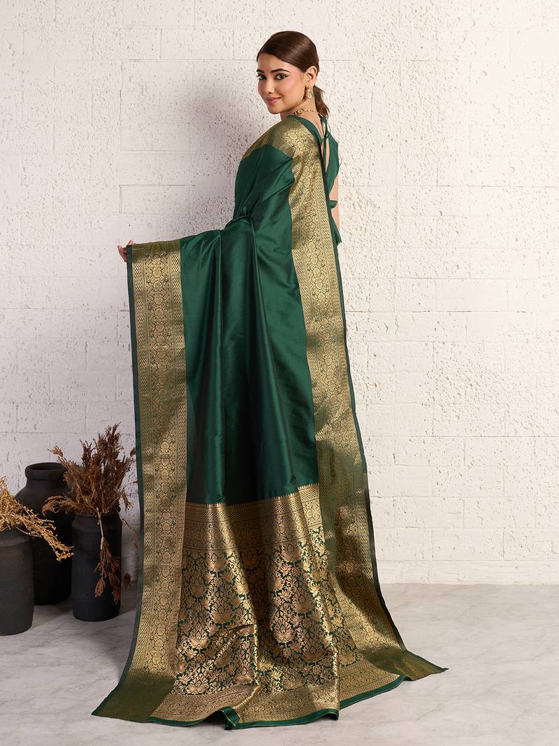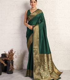 Green woven, self design, embellished pure silk banarasi saree with blouse