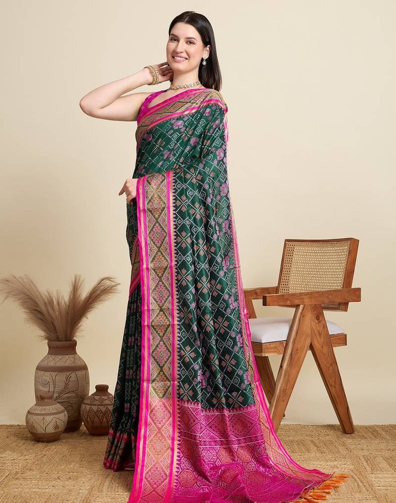 | Product Name | Green Woven Self Design Embellished Pure Silk Patola Saree With Blouse | |