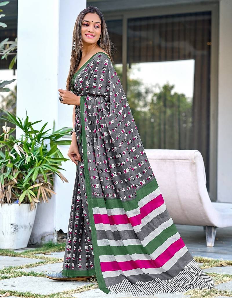 | Product Name | Grey Block Print Soft Pure Cotton Saree With Blouse. | |