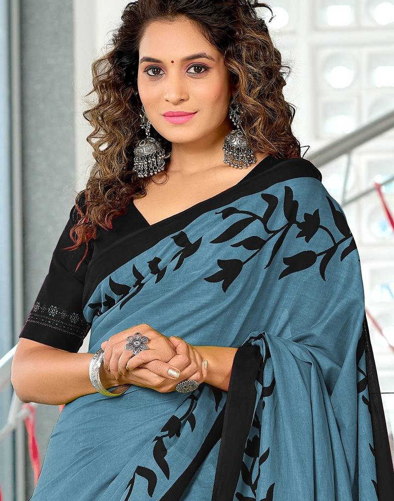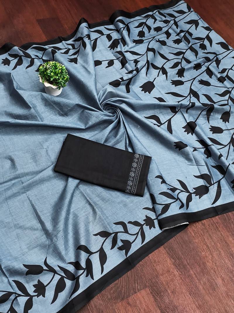 | Product Name | Grey Floral Print Mulmul Cotton Saree With Blouse. | |