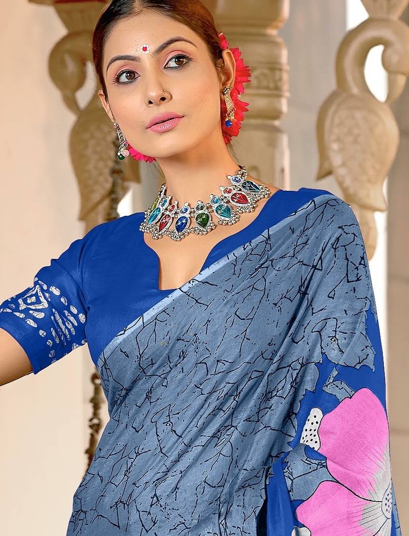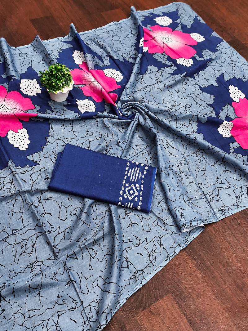 | Product Name | Grey Floral Print Mulmul Cotton Saree With Blouse. | |