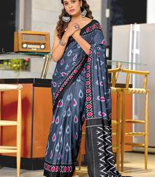Grey ikkat print mulmul cotton saree with blouse.