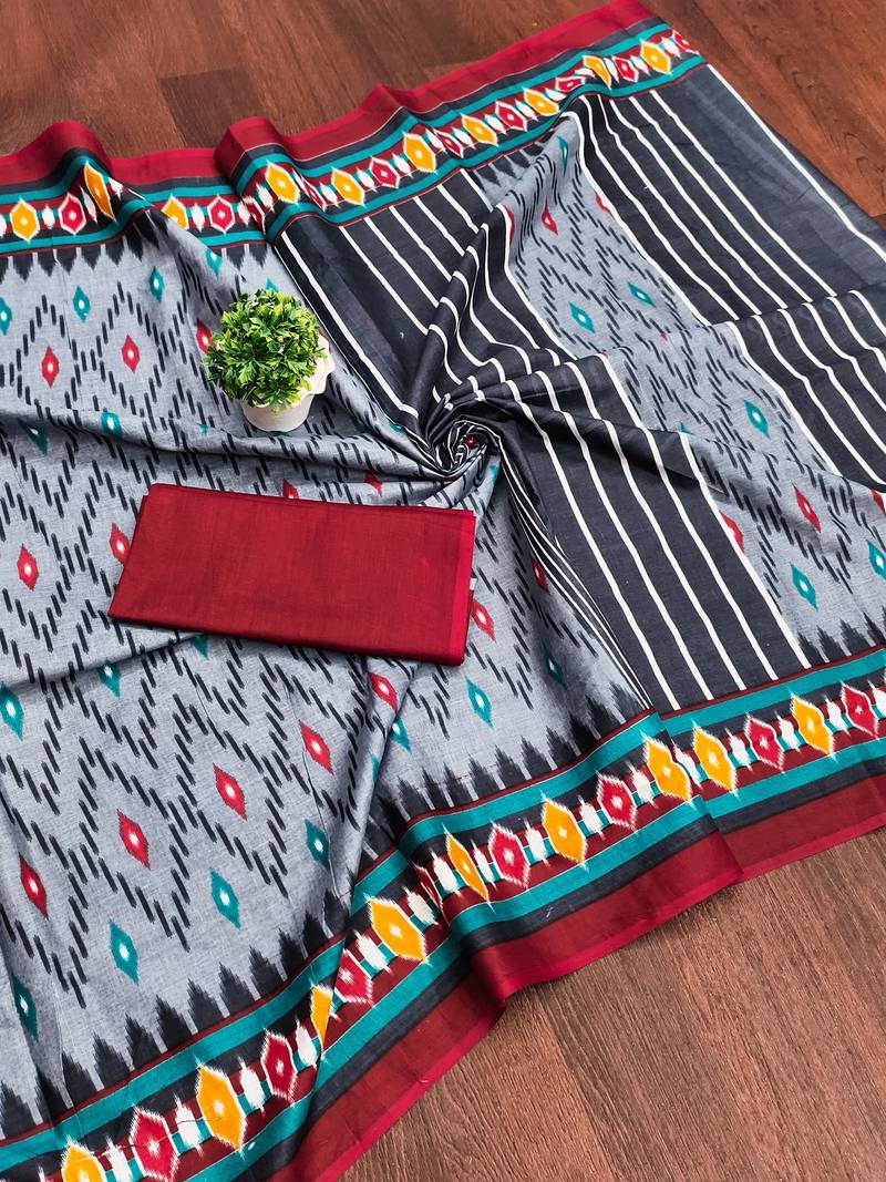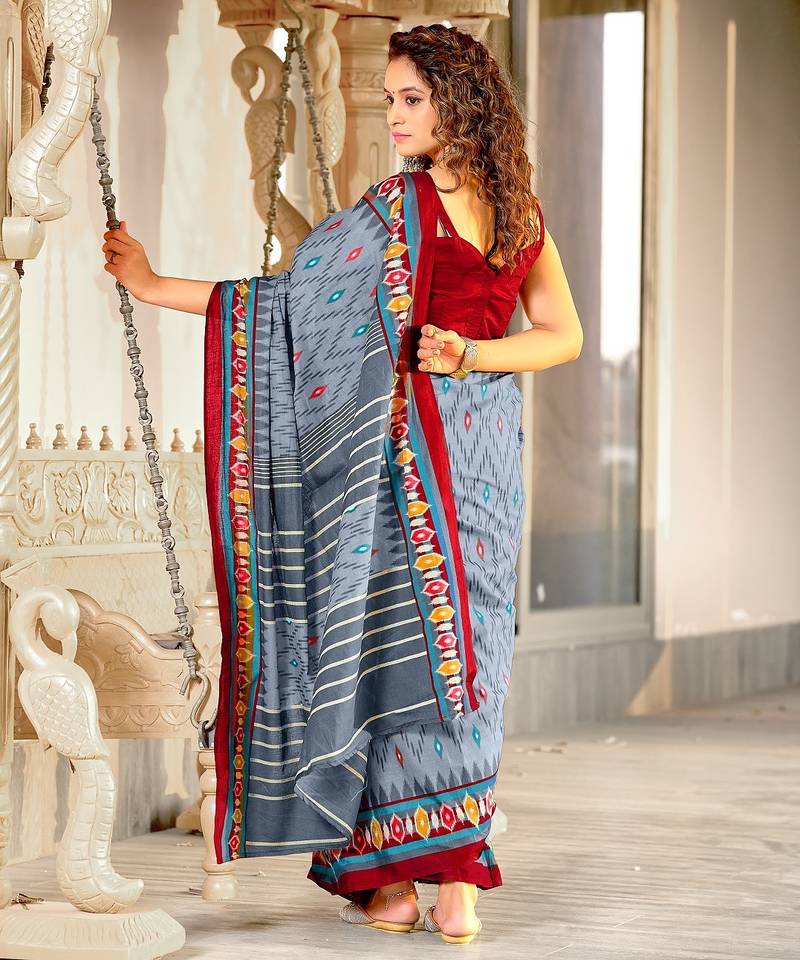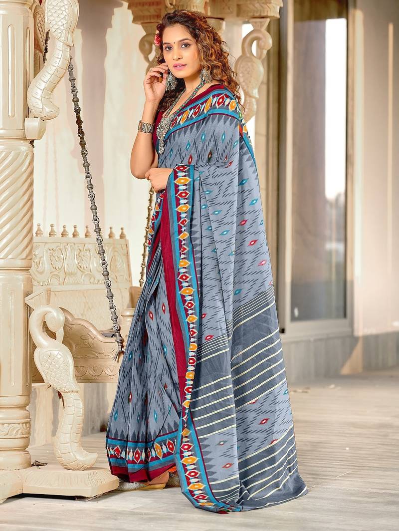| Product Name | Grey Ikkat Print Mulmul Cotton Saree With Blouse. | |