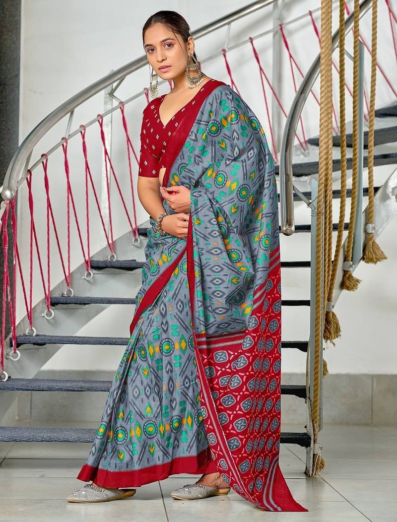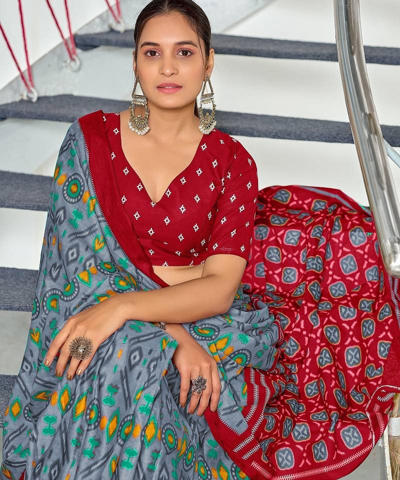 | Product Name | Grey Ikkat Print Soft Pure Cotton Saree With Blouse. | |