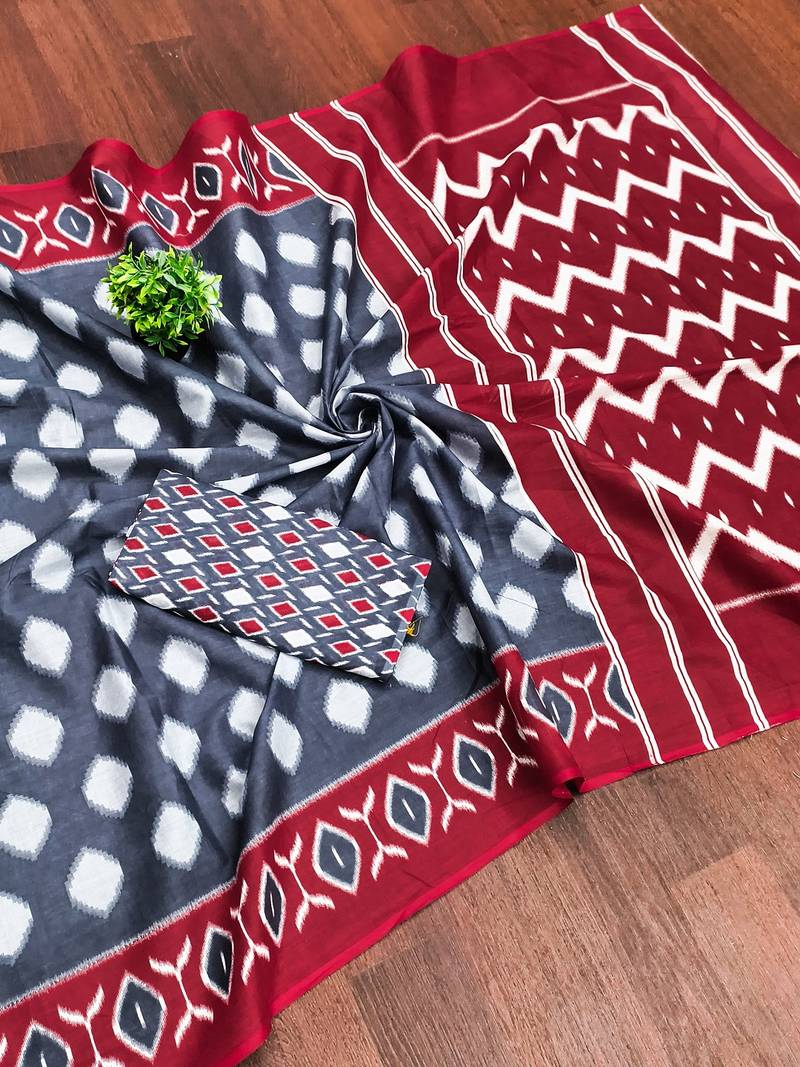 | Product Name | Grey Ikkat Print Soft Pure Cotton Saree With Blouse. | |
