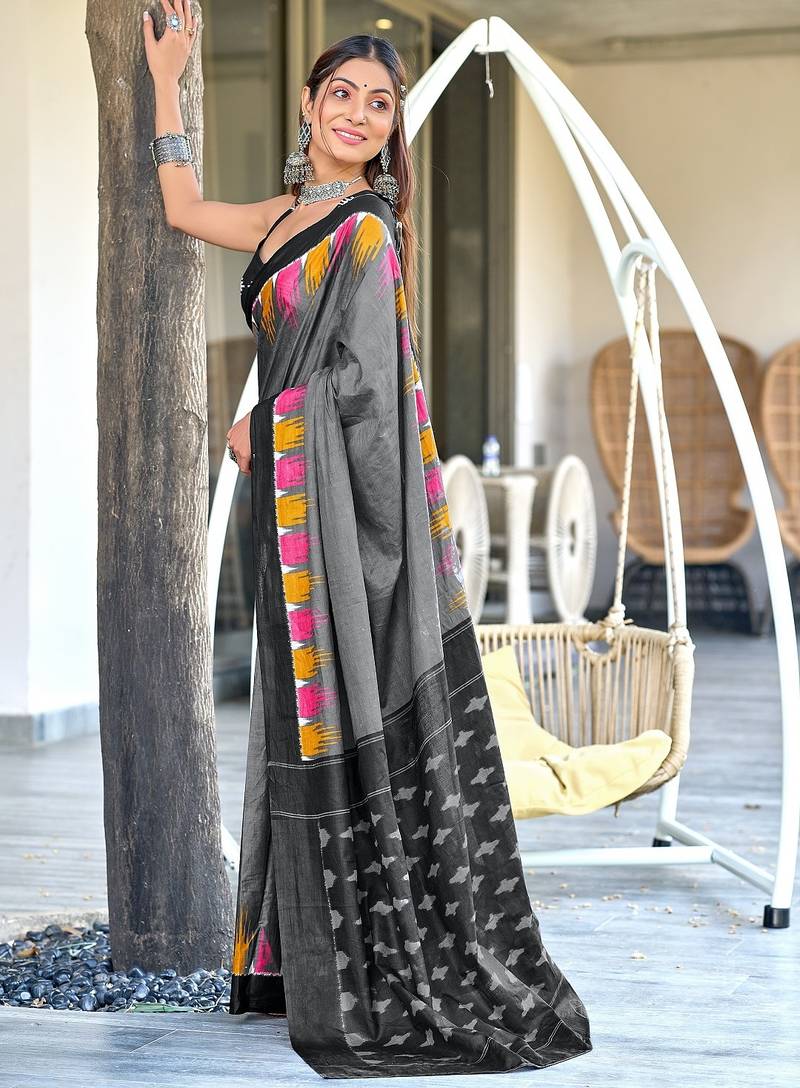 | Product Name | Grey Printed Mulmul Cotton Saree With Blouse. | |
