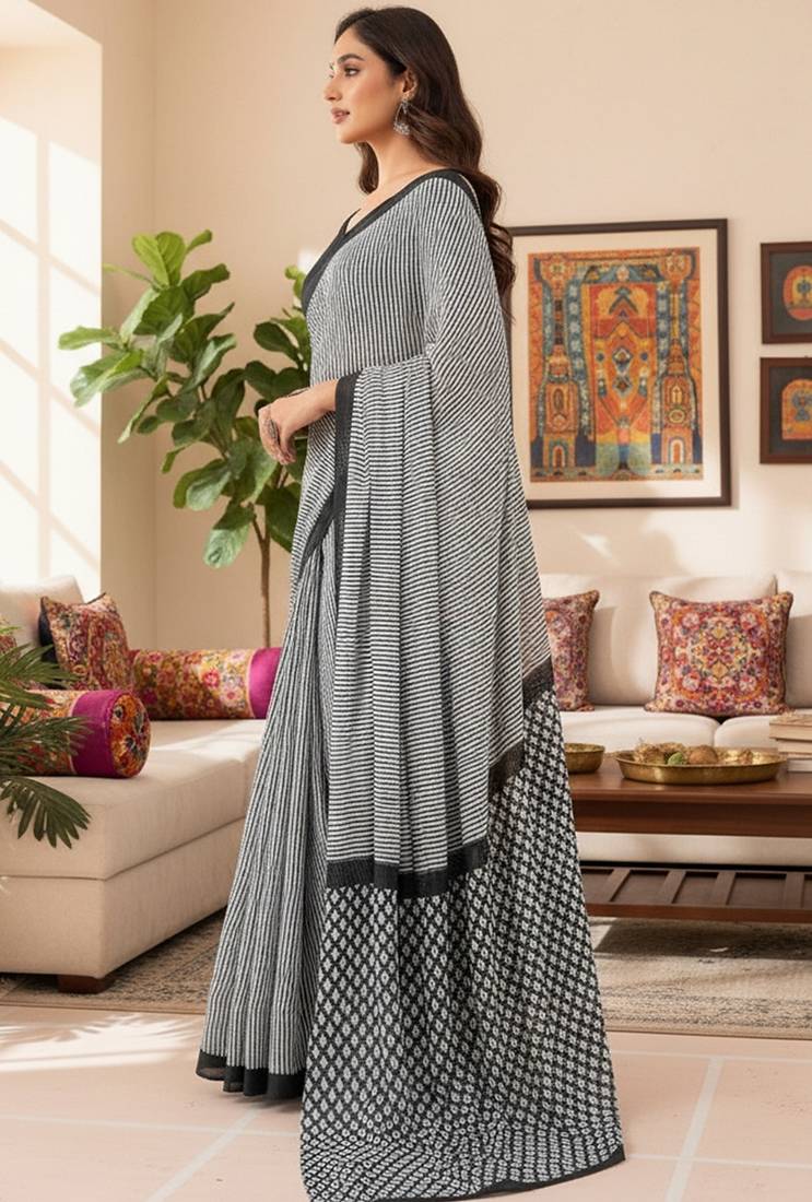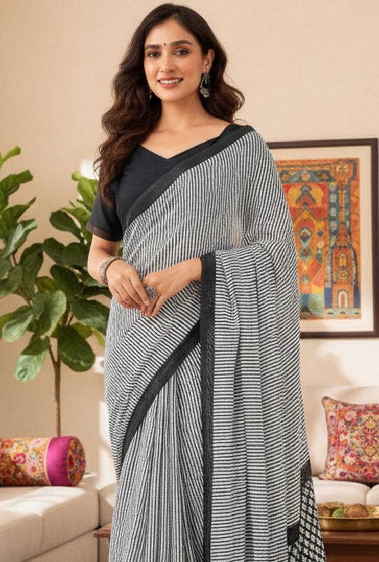 | Product Name | Grey Striped Print Soft Pure Cotton Saree With Blouse. | |