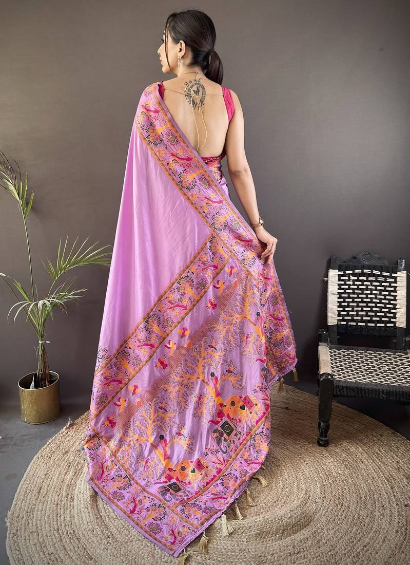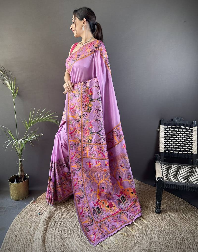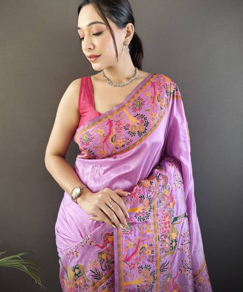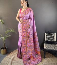 Lavender floral, meenakari, zari woven pashmina silk saree with blouse