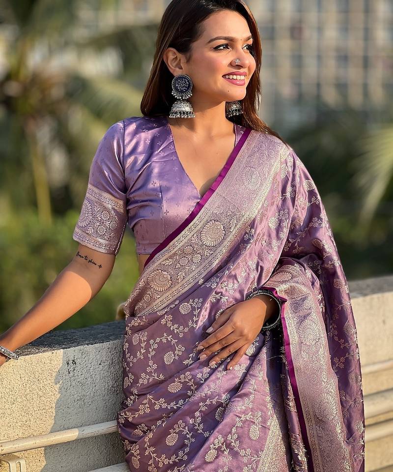 | Product Name | Lavender Woven Self Design Antique Silk Banarasi Saree With Blouse | |