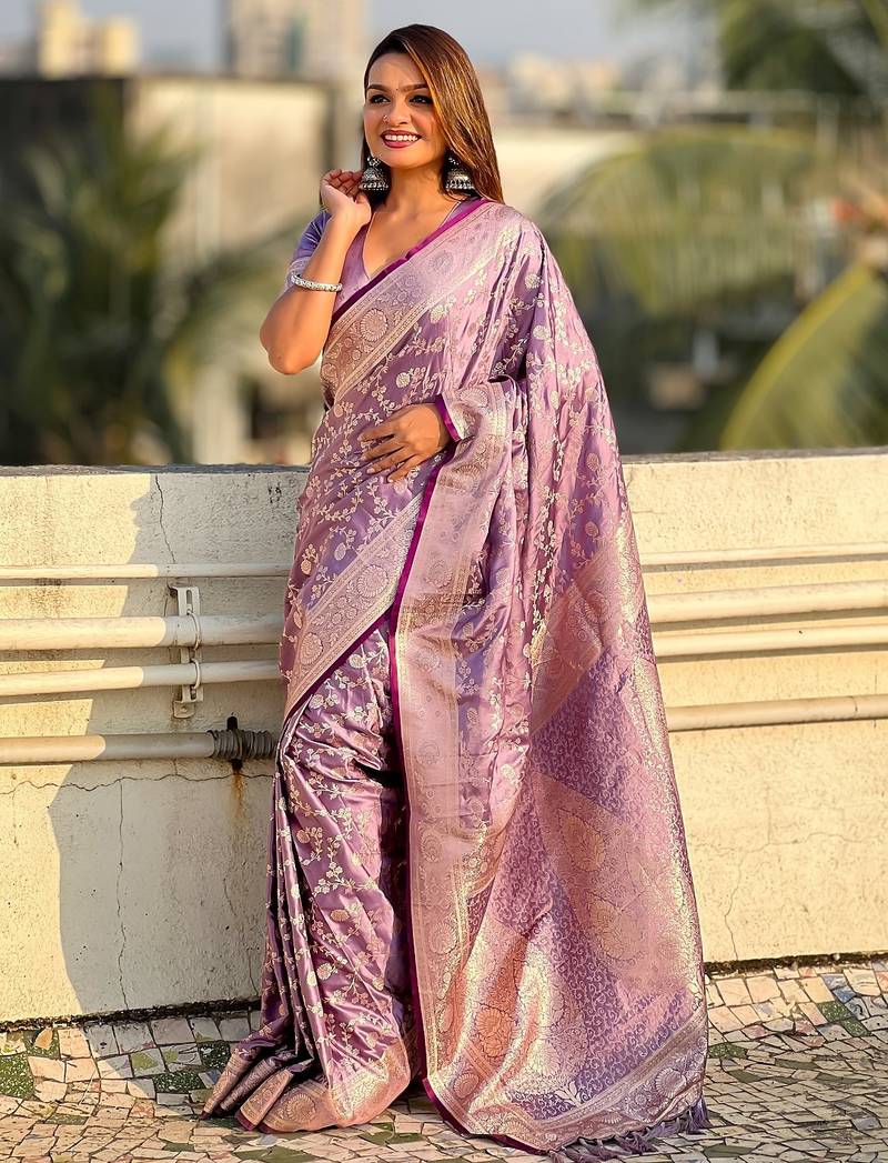 | • | Saree | : | Color- Lavender / Fabric- Banarasi Silk |