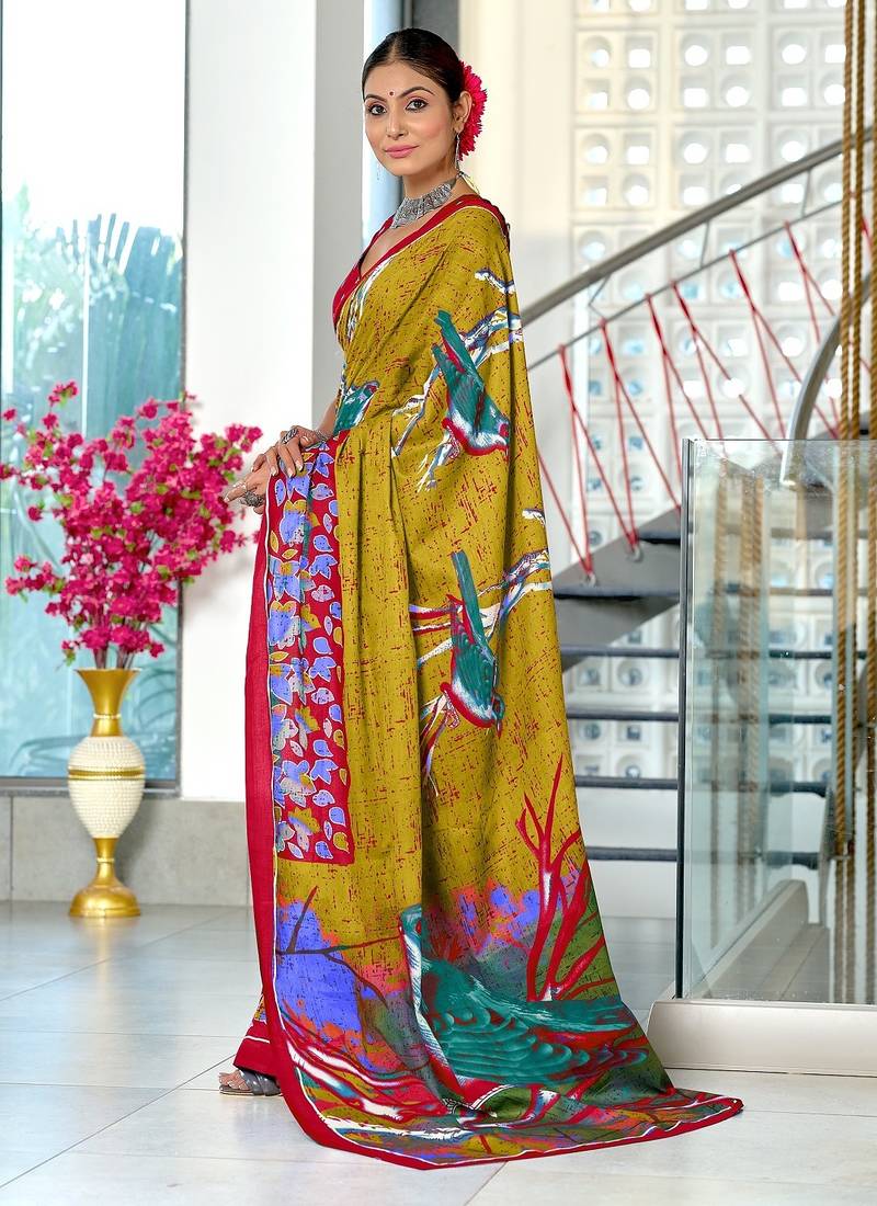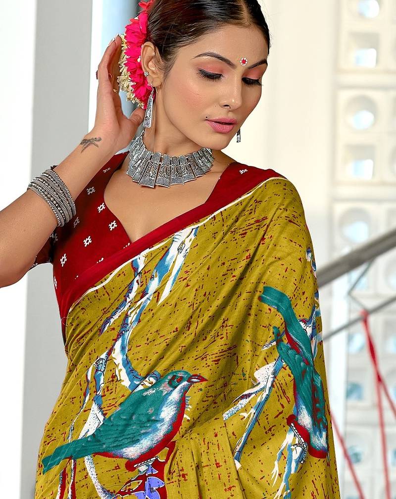 | Product Name | Lime Yellow Floral Print Soft Pure Cotton Saree With Blouse. | |