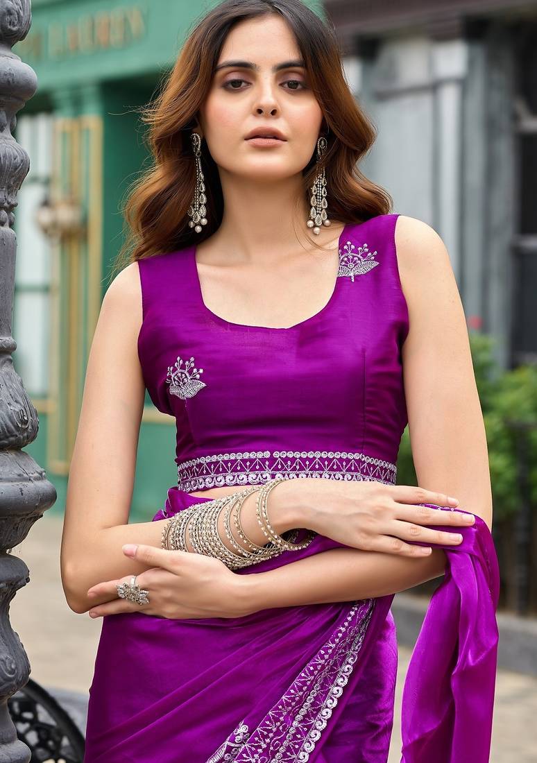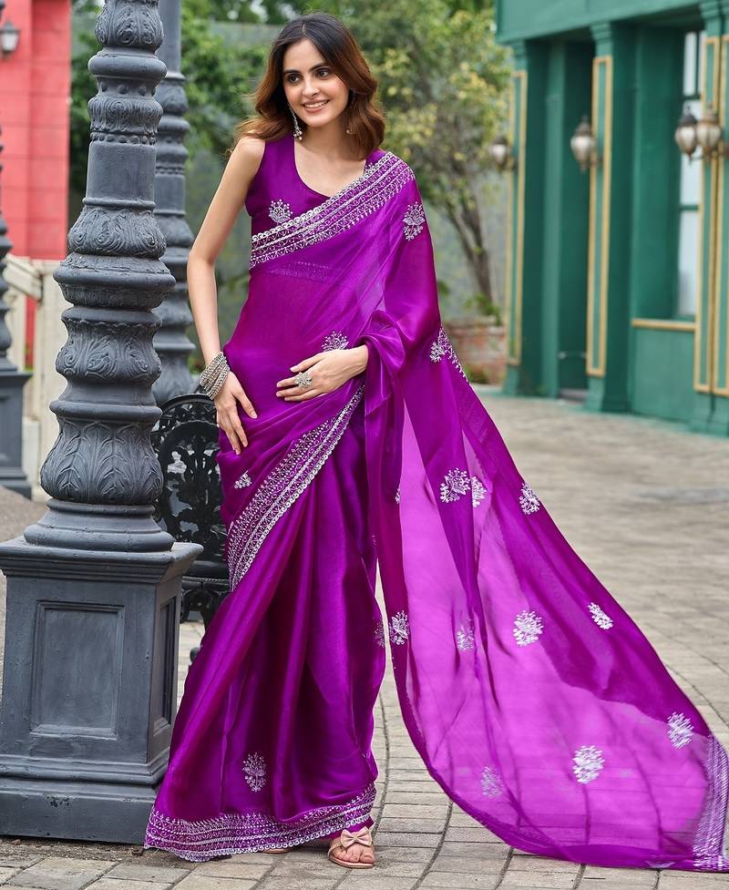 | Product Name | Magenta Embroidered Embellished Shimmer Chiffon Bollywood Saree With Blouse | |