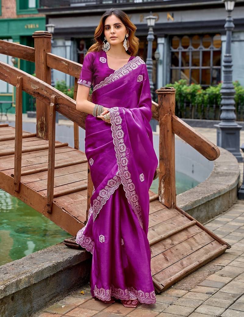 | • | Saree | : | Color- Magenta / Fabric- Organza |