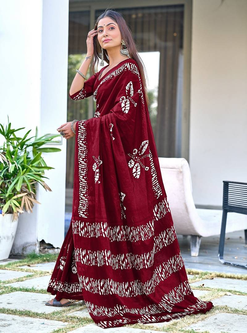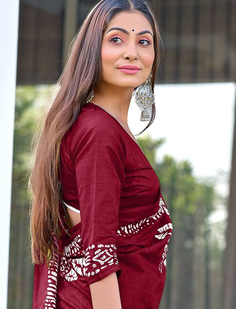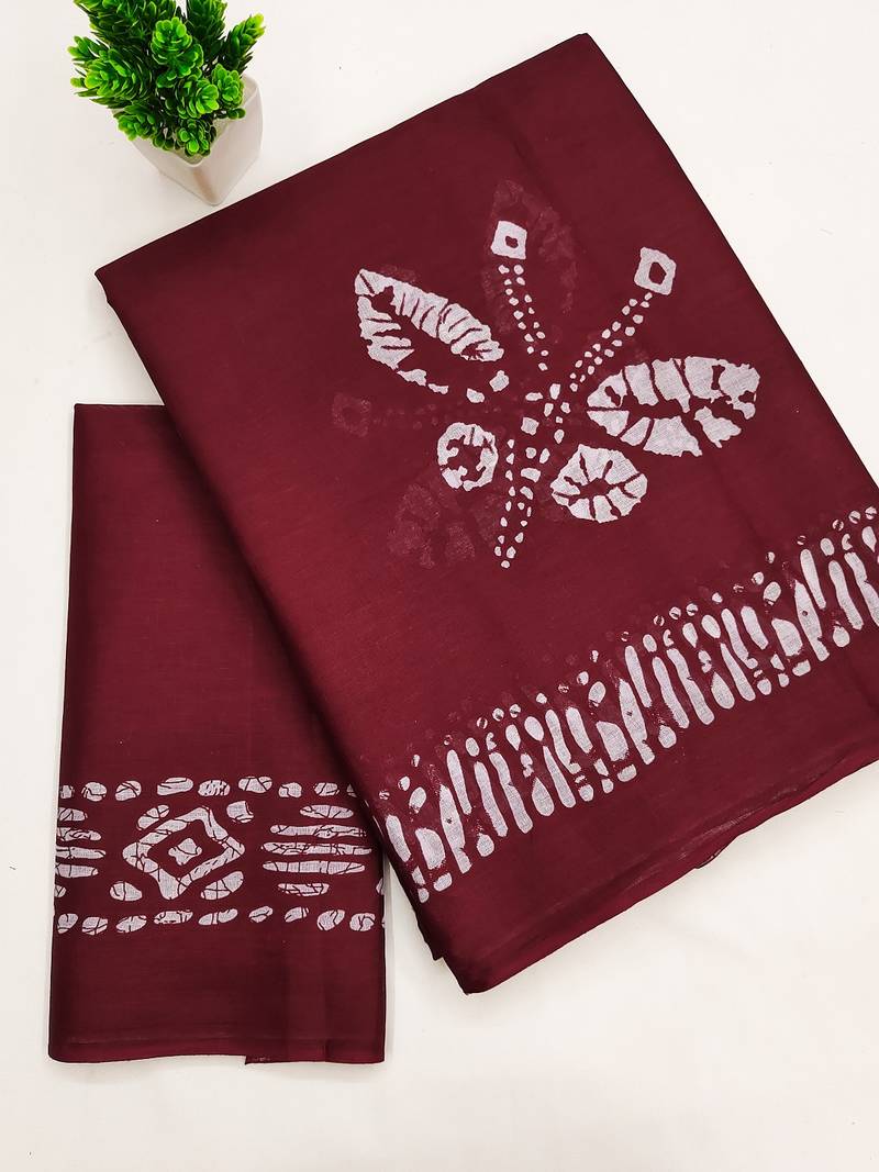 | Product Name | Maroon Block Print Soft Pure Cotton Saree With Blouse. | |