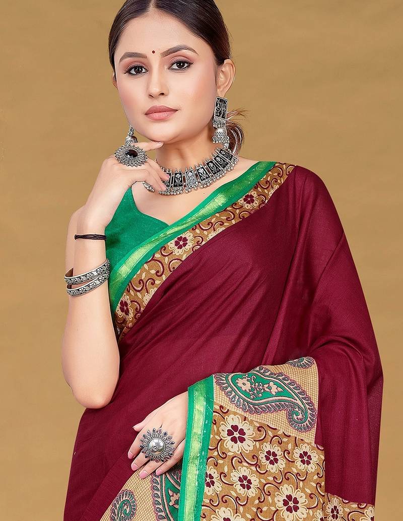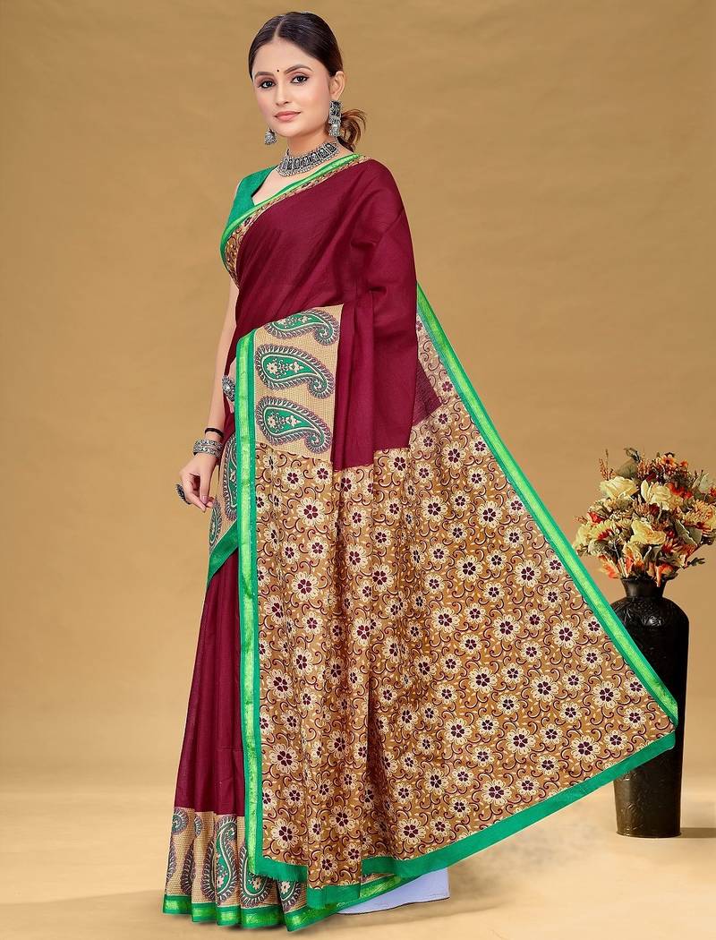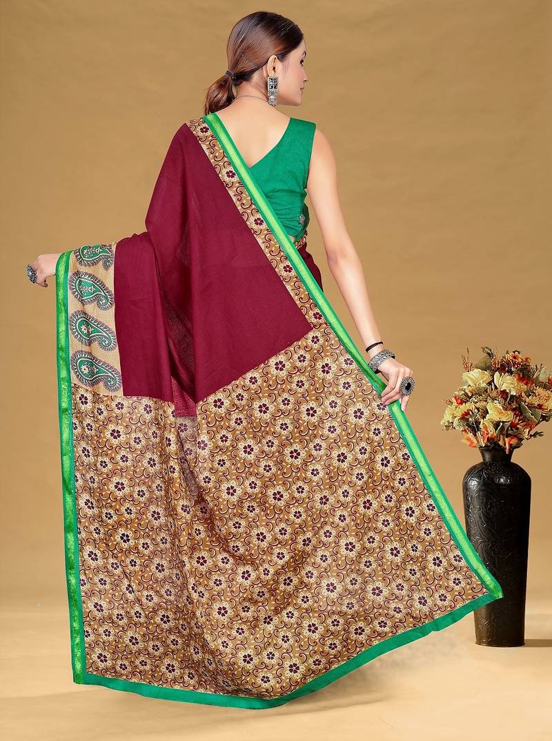 | Product Name | Maroon Floral Print Muslin Cotton Saree With Blouse. | |