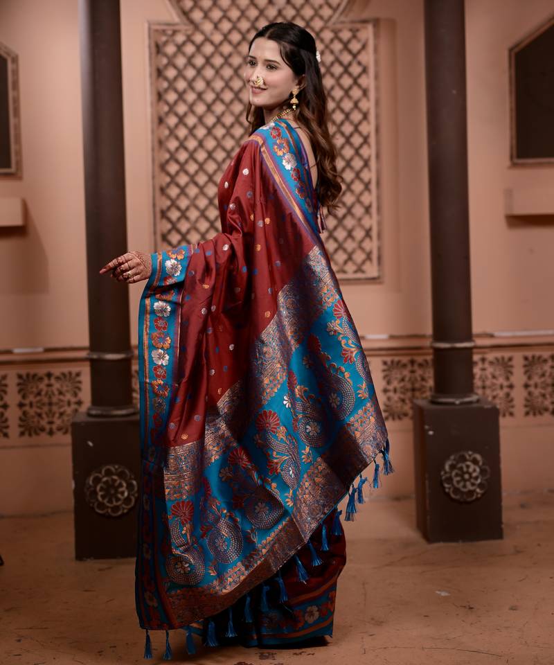 | Product Name | Maroon Floral, Zari Work Soft Silk Saree With Blouse | |