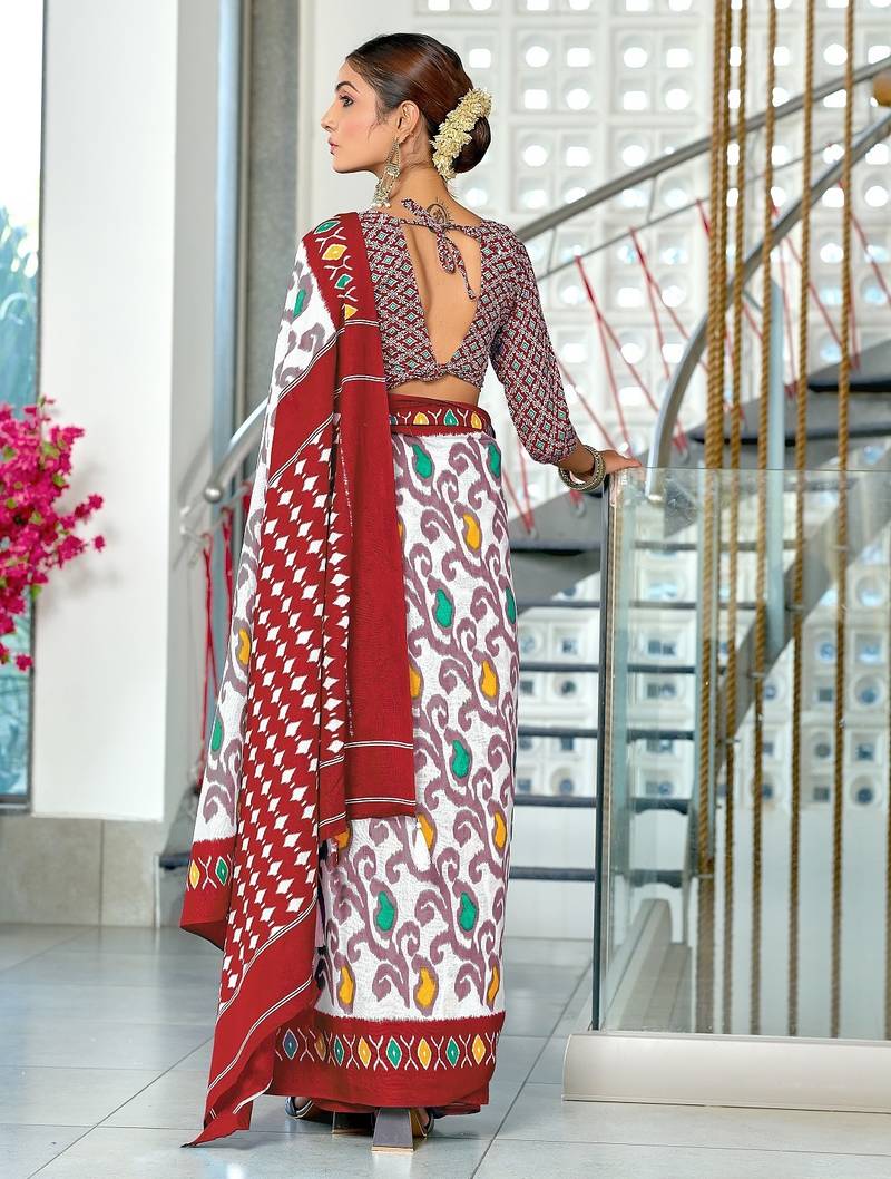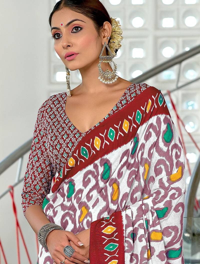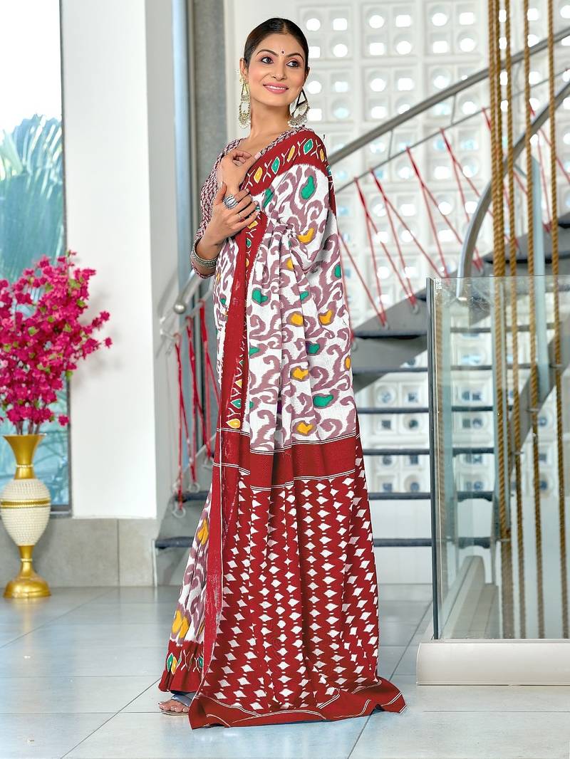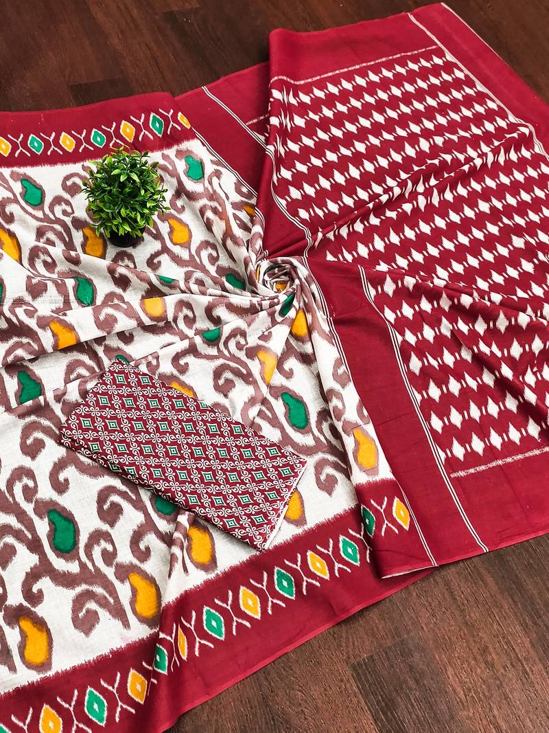 | Product Name | Maroon Ikkat Print Mulmul Cotton Saree With Blouse. | |
