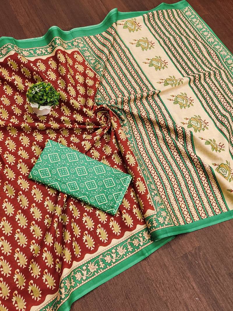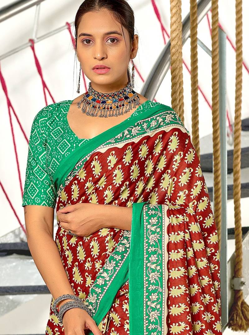 | Product Name | Maroon Paisley Print Mulmul Cotton Saree With Blouse. | |