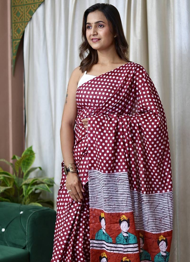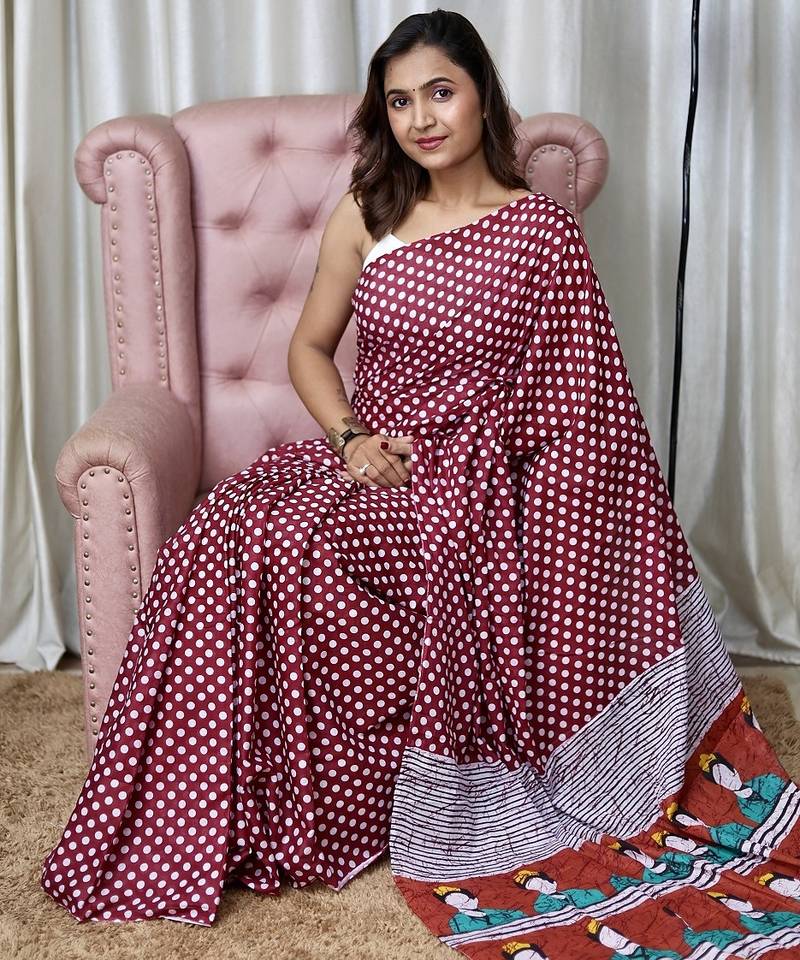 | Product Name | Maroon Polka Dot Print Soft Pure Cotton Saree With Blouse. | |