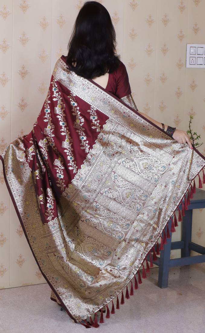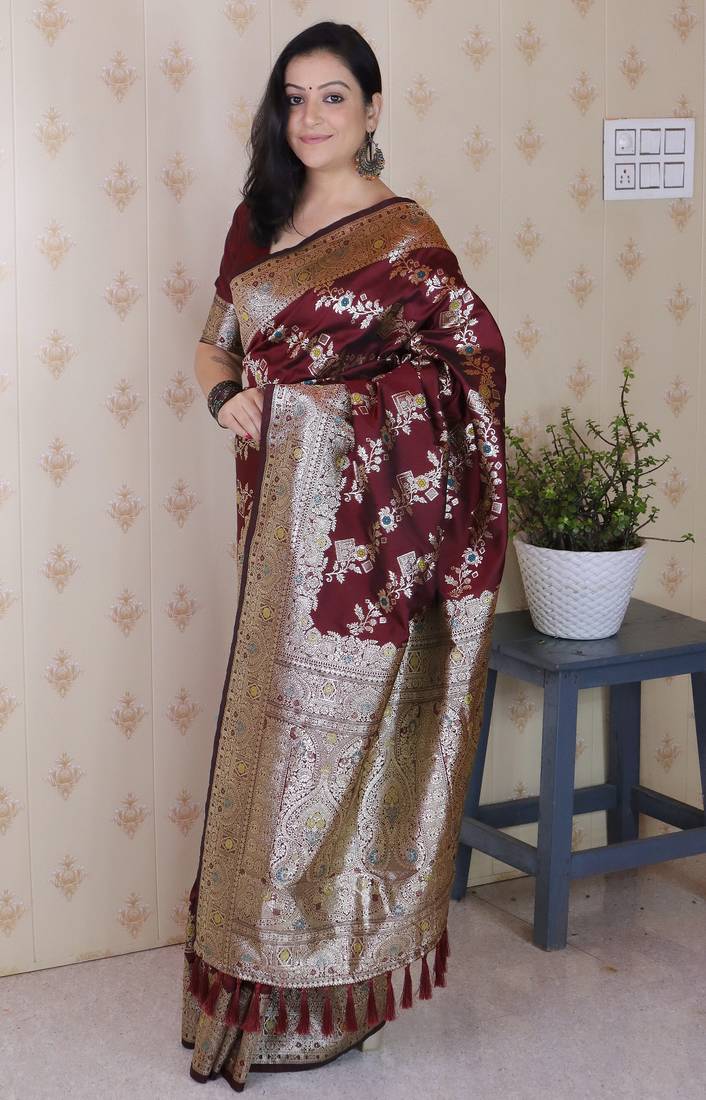 | Product Name | Maroon Woven Self Design Pure Silk Banarasi Saree With Blouse | |