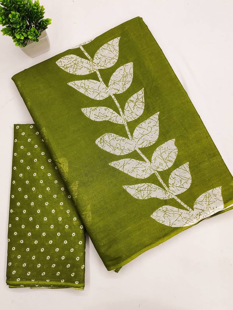 | Product Name | Mehendi Block Print Soft Pure Cotton Saree With Blouse. | |