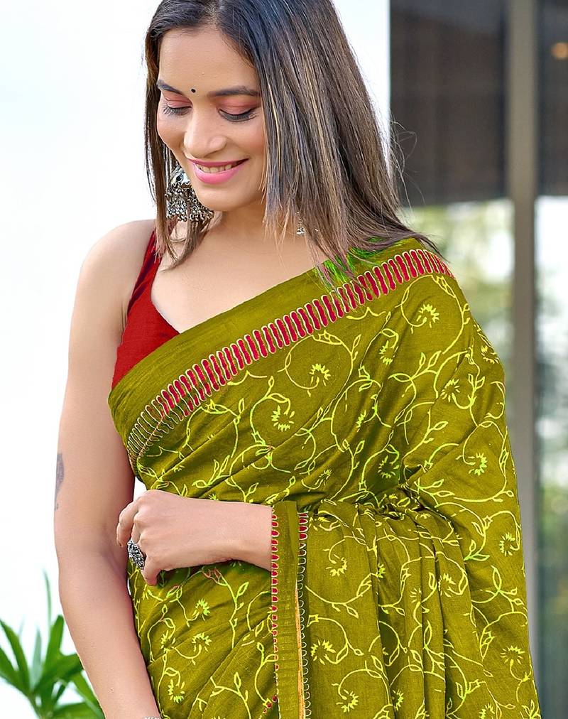 | • | Saree | : | Color- Mehendi / Fabric- Pure Cotton |