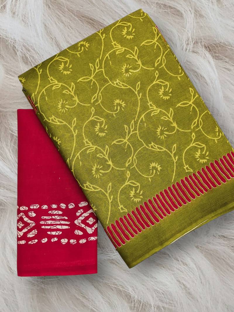 | Product Name | Mehendi Block Print Soft Pure Cotton Saree With Blouse. | |