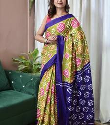 Mehendi ikkat print mulmul cotton saree with blouse.