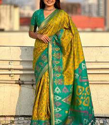 Mehendi woven self design silk blend patola saree with blouse