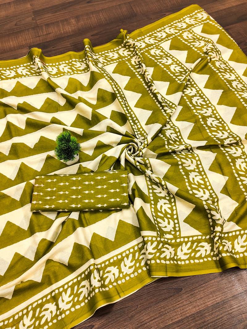 | Product Name | Mehendi Zigzag, Block Print Mulmul Cotton Saree With Blouse. | |