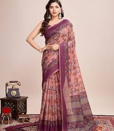 Multicolor printed floral print geometric print cotton linen bollywood saree with blouse