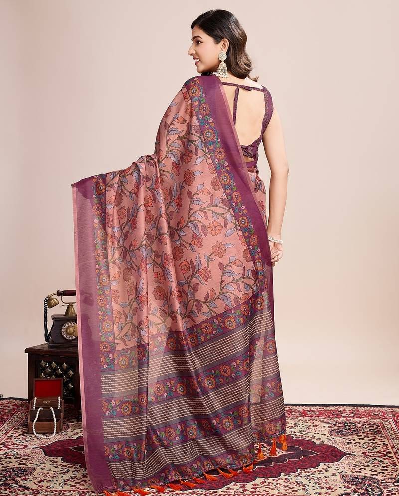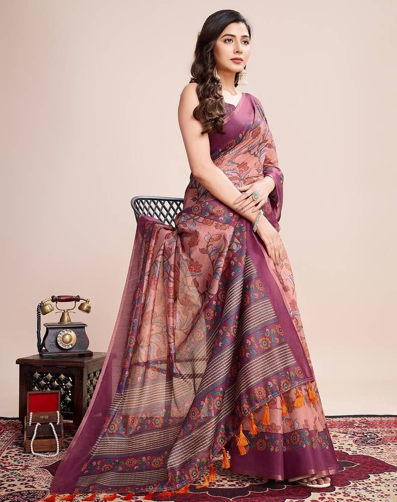 | Product Name | Multicolor Printed Floral Print Geometric Print Cotton Linen Bollywood Saree With Blouse | |