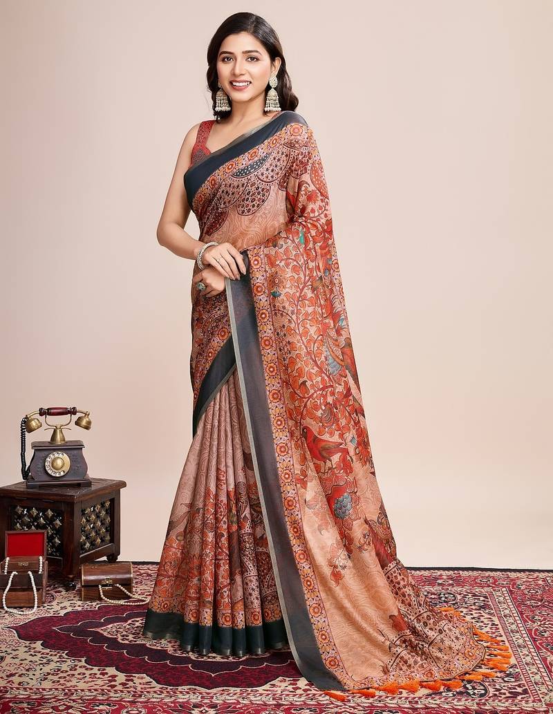 | Product Name | Multicolor Printed Floral Print Geometric Print Cotton Linen Bollywood Saree With Blouse | |