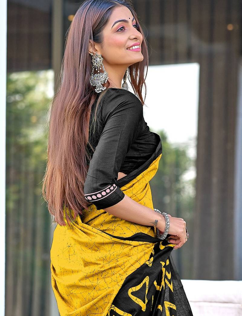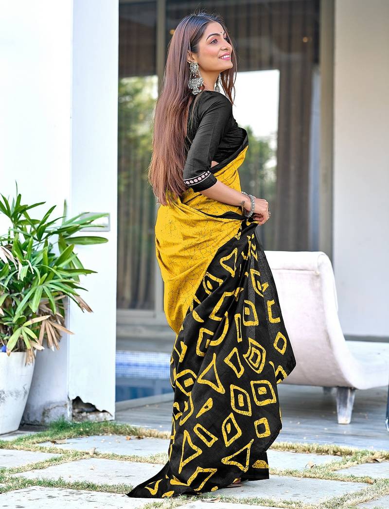 | Product Name | Mustard Block Print Soft Pure Cotton Saree With Blouse. | |