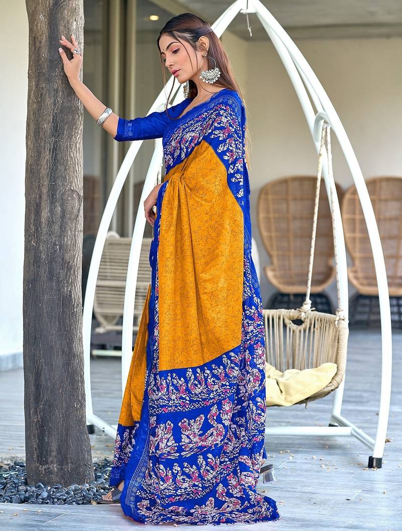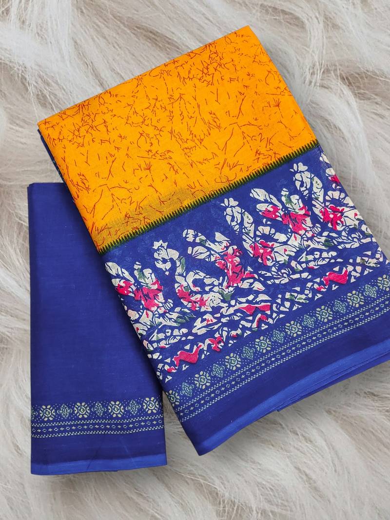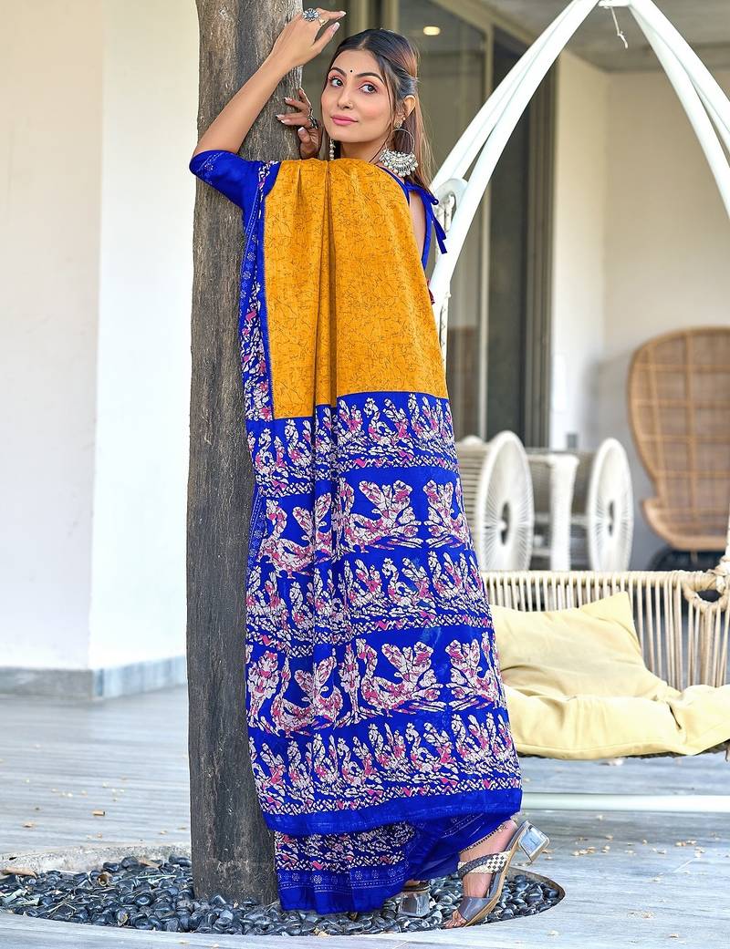 | Product Name | Mustard, Blue Batik Print Soft Pure Cotton Saree With Blouse. | |