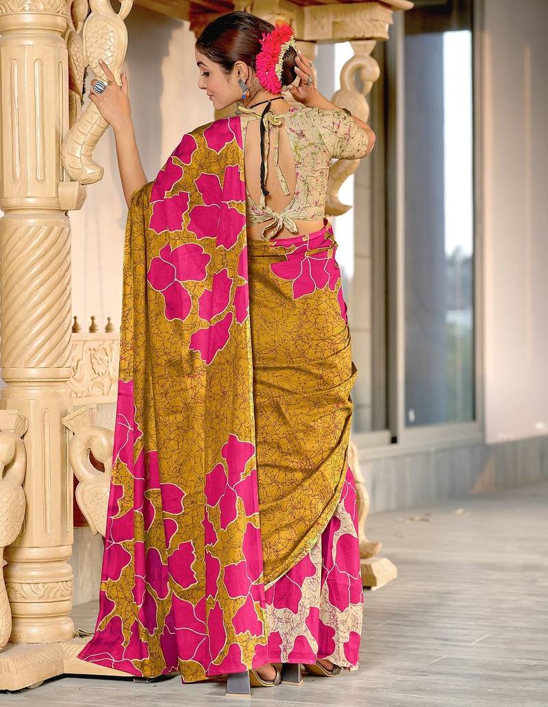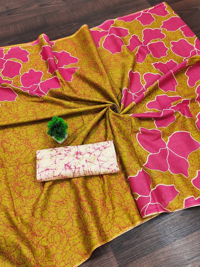 | Product Name | Mustard Floral, Batik Print Soft Pure Cotton Saree With Blouse. | |