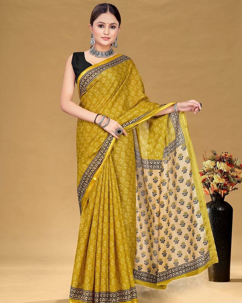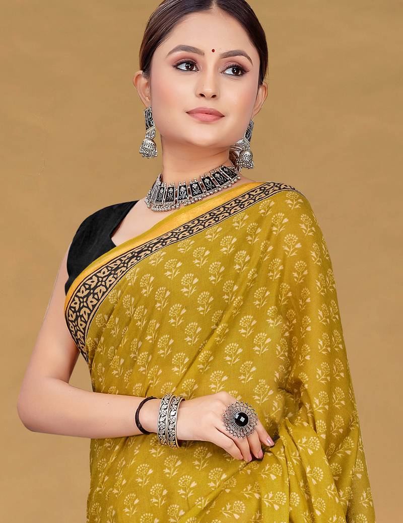 | Product Name | Mustard Floral Print Muslin Cotton Saree With Blouse. | |