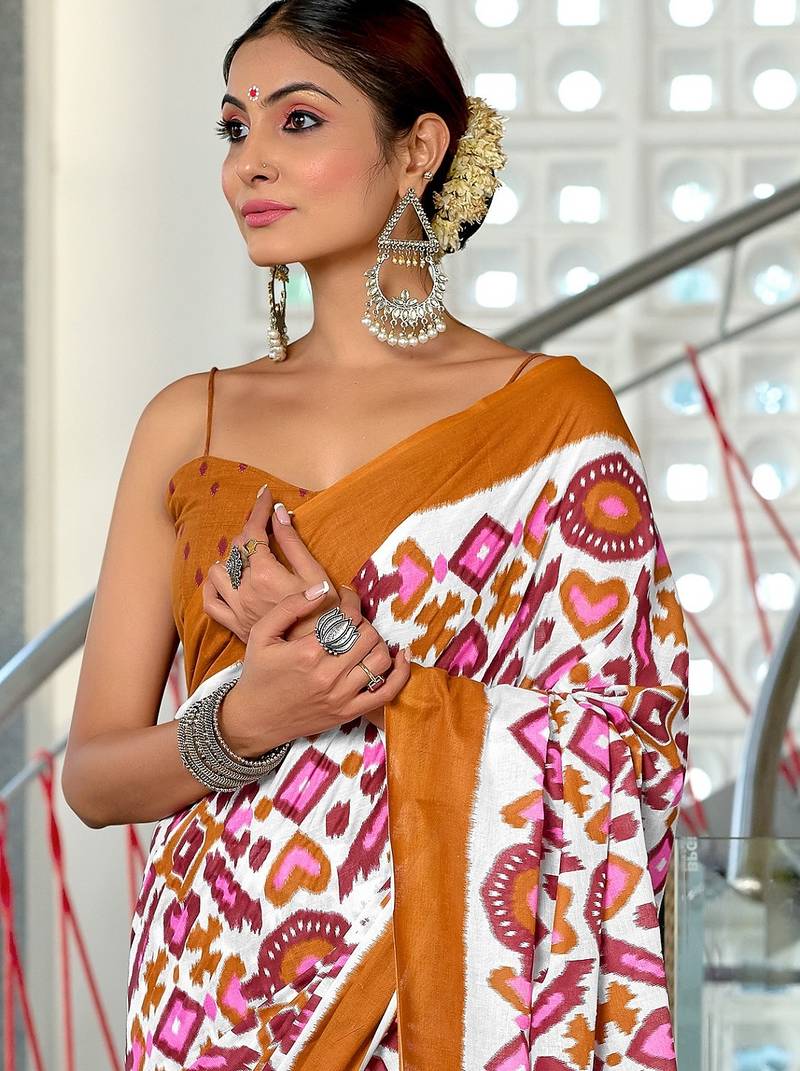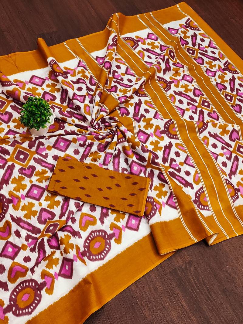 | Product Name | Mustard Ikkat Print Mulmul Cotton Saree With Blouse. | |