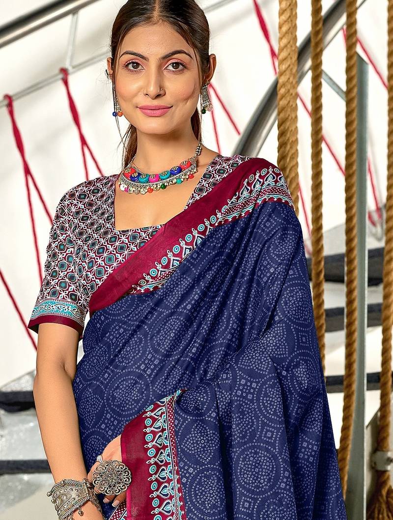 | Product Name | Navy Blue Bandhani Print Mulmul Cotton Saree With Blouse. | |