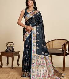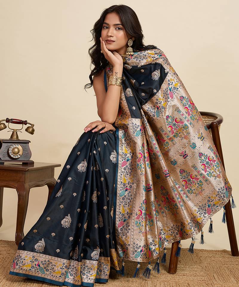 | Product Name | Navy Blue Floral Print Woven Satin Banarasi Saree With Blouse | |