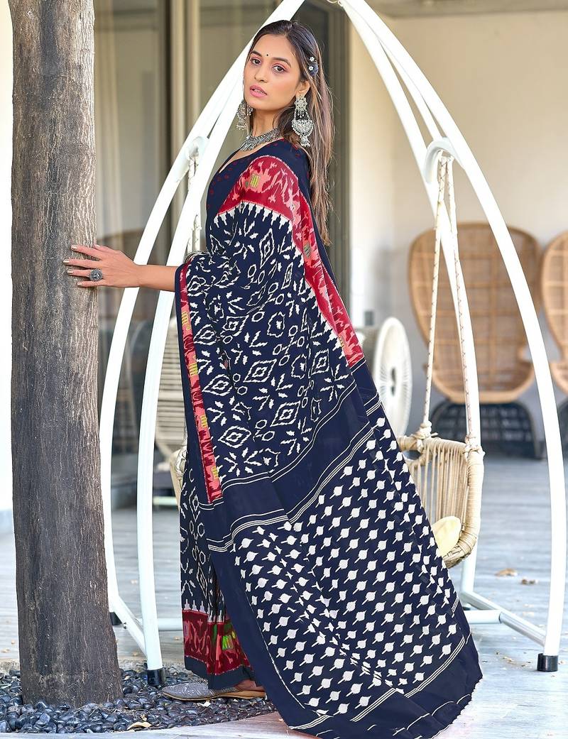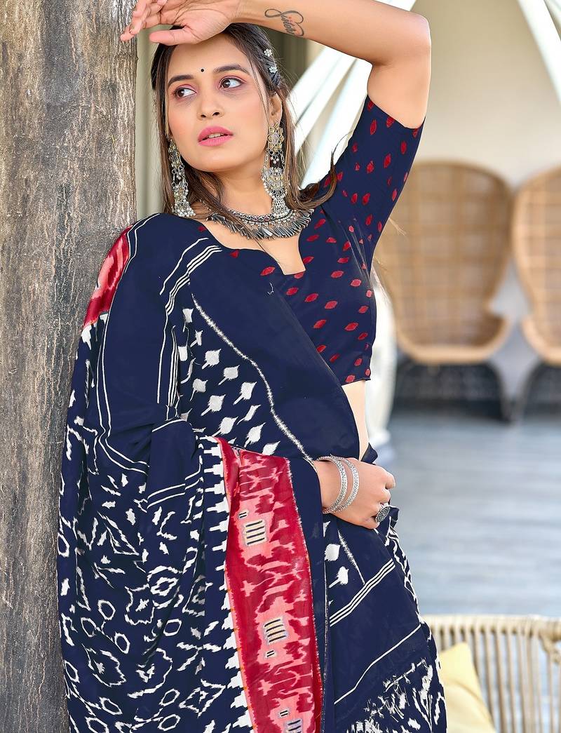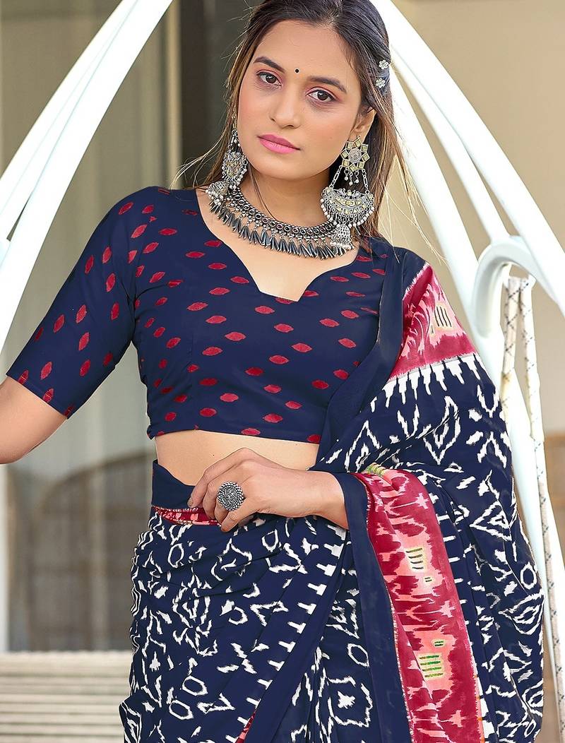 | Product Name | Navy Blue Ikkat Print Mulmul Cotton Saree With Blouse. | |