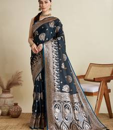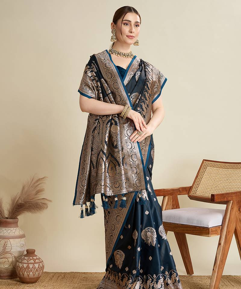 | Product Name | Navy Blue Woven Embellished Self Design Satin Silk Blend Banarasi Saree With Blouse | |