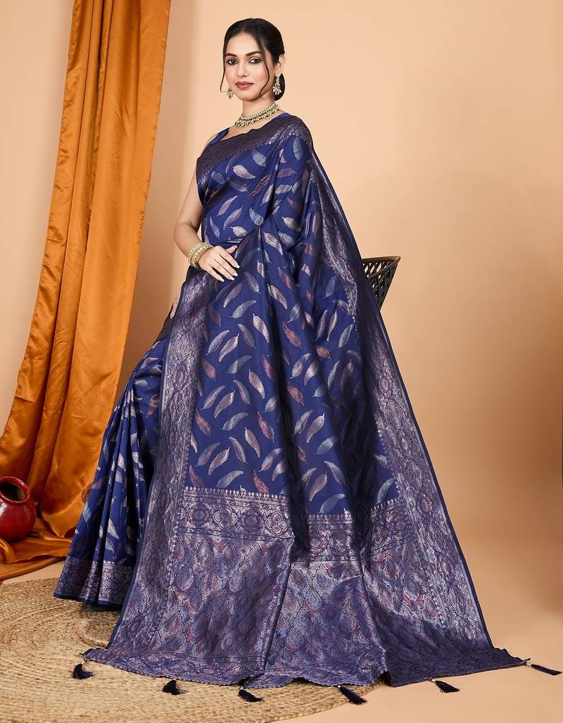 | Product Name | Navy Blue Woven Self Design Embellished Pure Silk Banarasi Saree With Blouse | |