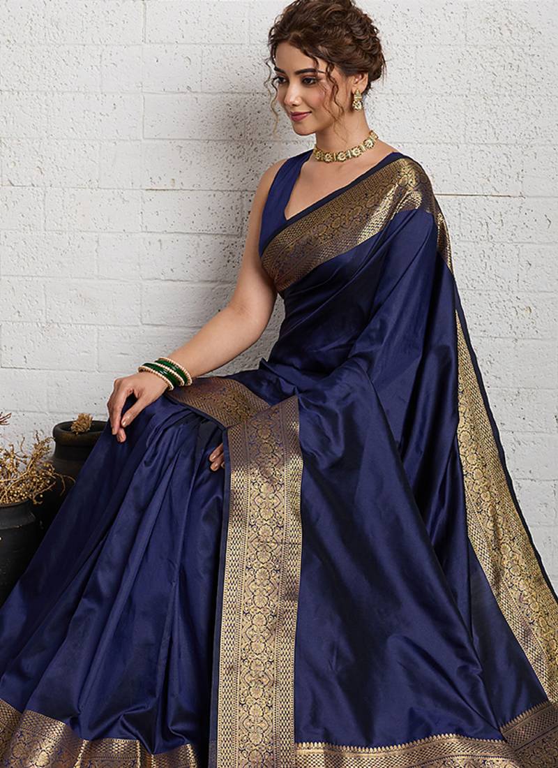 | Product Name | Navy Blue Woven, Self Design, Embellished Pure Silk Banarasi Saree With Blouse | |