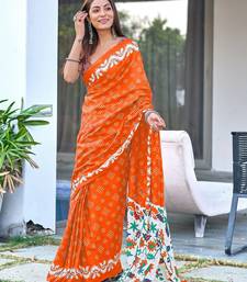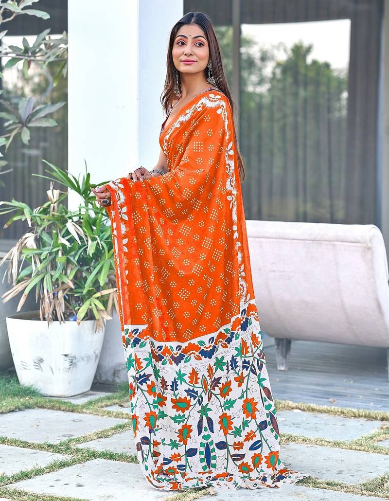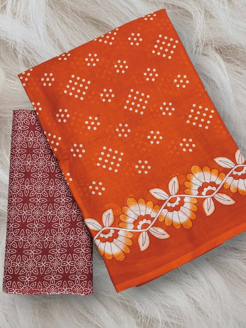 | Product Name | Orange Block Print Soft Pure Cotton Saree With Blouse. | |