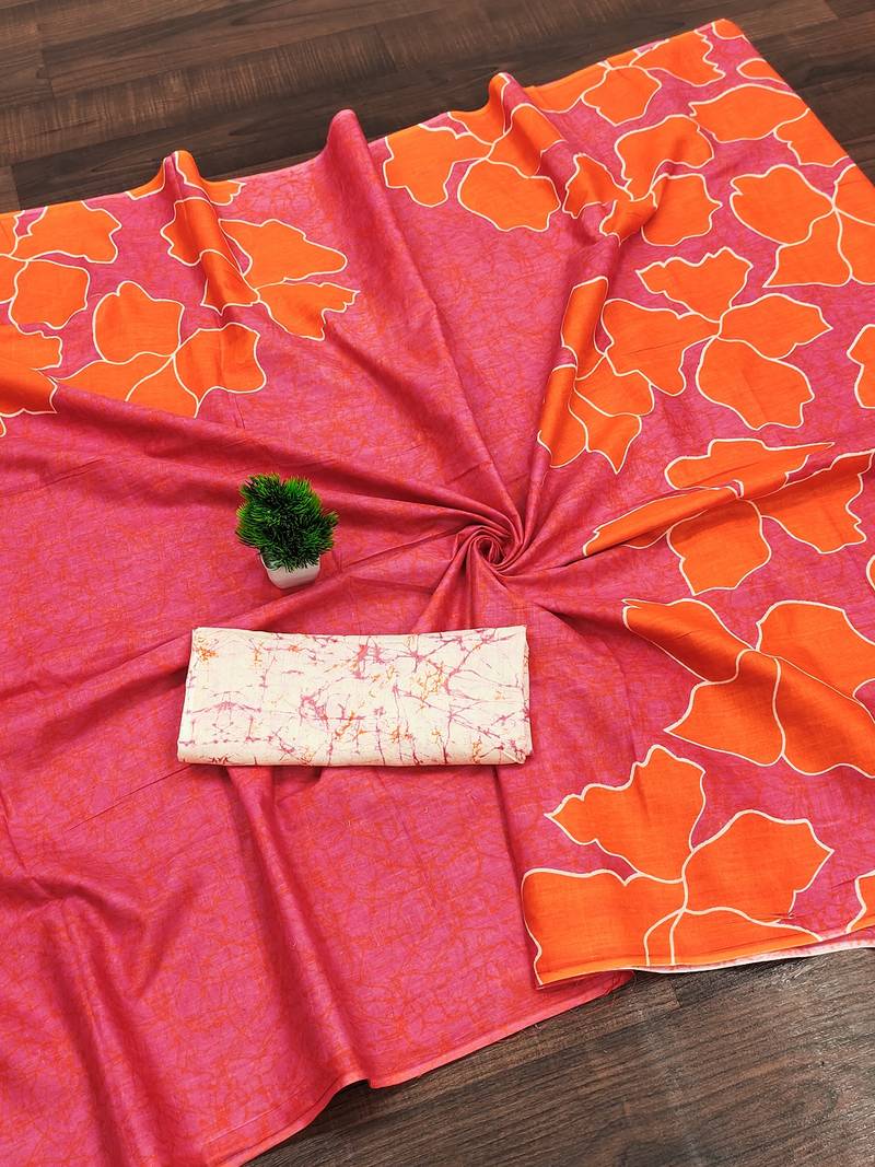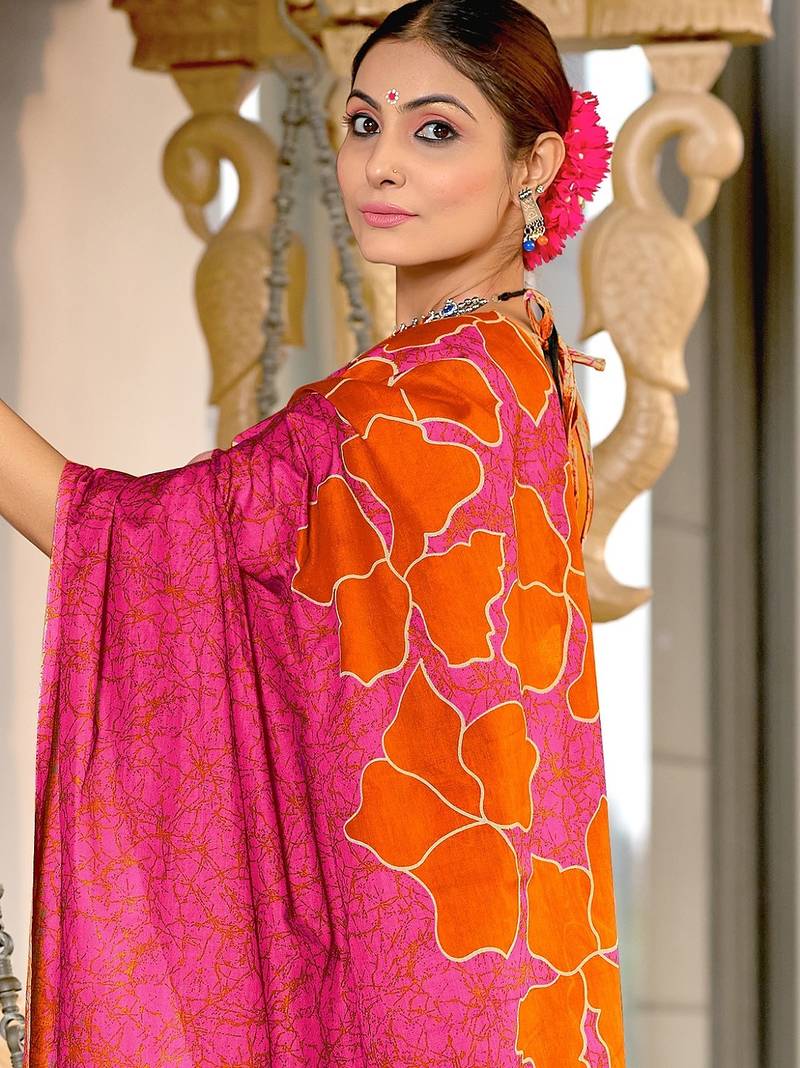| Product Name | Orange Floral, Batik Print Soft Pure Cotton Saree With Blouse. | |