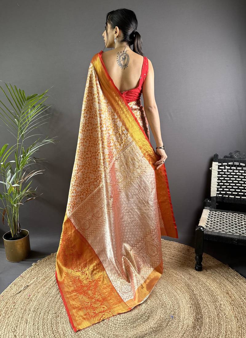 | Product Name | Orange Floral, Peacock Zari Woven Kanjivaram Tissue Silk Saree With Blouse | |